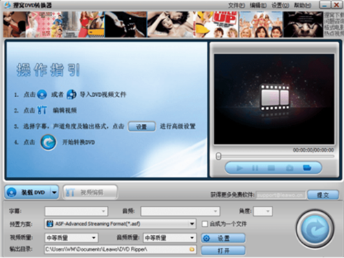 1.以dvd光盘转rmvb格式视频为例。将需要转换的视频光盘放入到DVD光驱中,打开dvd转换转换器,如下图,点击“装载DVD”,浏览本地文件夹,选择DVD光驱或者包含有VIDEO_TS目录的文件夹,“确定”。