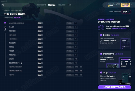 漫漫长夜十四项修改器MrAntiFun版使用说明: