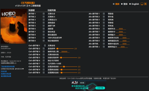 流浪汉艰难的生活三十二项修改器风灵月影版按键功能说明: