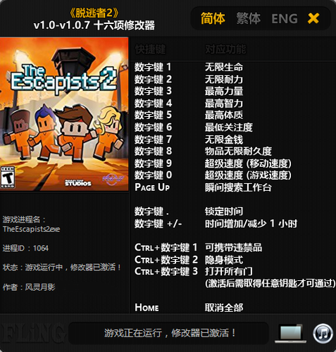脱逃者2十六项修改器 风灵月影版