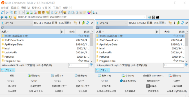 3、标签页和双面板的双重管理方式:双面板虽然提高效率,不过占用空间较大,这个也就是为什么软件No1非常喜欢带有标签页的资源管理器的原因,而Multi Commander免费版则集合了这两者,肯定能够带来新的使用方法和更好的使用效果。