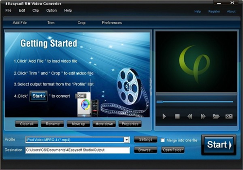 4Easysoft RM Video Converter具有简单的用户界面,几步即可转换RM视频。