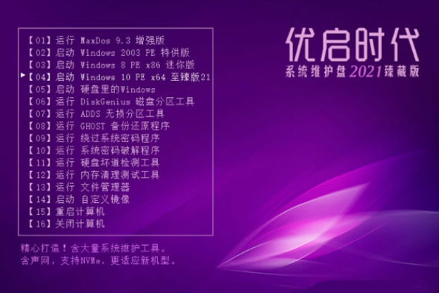 优启时代系统维护盘2021臻藏版是一款全能的系统维护工具,清爽,干净,软件功能丰富,可以在dos下对系统进行全方位的维护,绿色无捆绑,纯净无广告,该版本在十二周年纪念版的基础上衍伸制作,完美各种win系统,可以进行硬盘分区、系统维护,有需要的用户赶快下载使用吧!