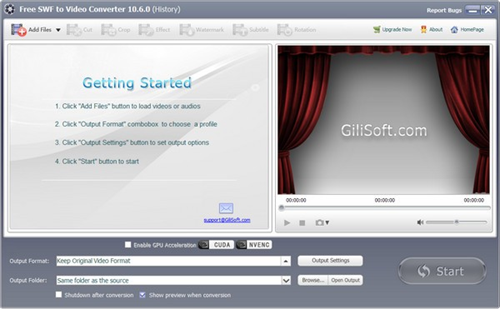 Gilisoft视频转换器是Flash到视频转换的最佳选择。这个强大的工具可以很容易地将Macromedia Flash SWF文件转换成视频或音频文件。