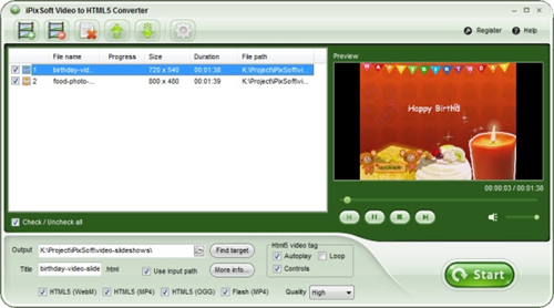 iPixSoft Video to HTML5 Converter特色介绍