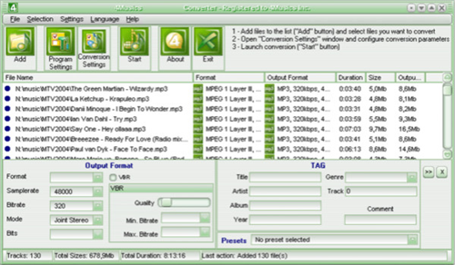 音频处理工具需要适度的系统资源,支持多种语言和界面外观,包括带有快照的精心编写的帮助文件,具有良好的响应时间并可以快速完成任务,同时保持良好的音质在输出轨道中。我们强烈建议所有用户使用4Musics RA to MP3 Converter。