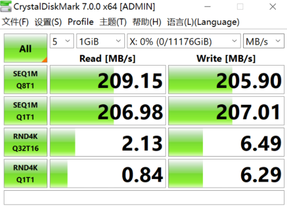 * 默认值:SEQ 1MiB Q8T1,SEQ 128KiB Q32T1,RND 4KiB Q32T1,RND 4KiB Q1T1
