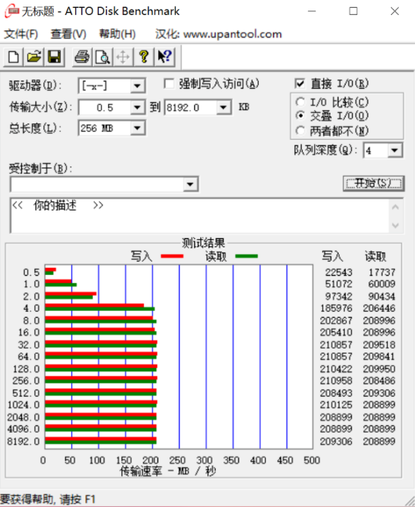 Drive-盘符: 本次测试的逻辑驱动器盘符(也就意味着需要用ATTO做测试,必须要先把硬盘驱动器分区并给一个盘符)。