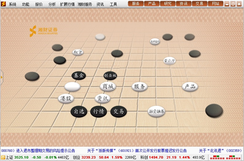 湘财证券金禾金融终端是知名厂商打造的正规专业证券软件,通过这款软件用户可以直观地看到所有的市场信息,新闻资讯、行情交易等等方面,让你随时把握市场动向,为你的投资保驾护航!湘财证券公司提供的,目前市场上主流的通达信版行情交易软件,集新导航、新行情、新资讯、新交易、新服务为一体的五合一证券交易平台。