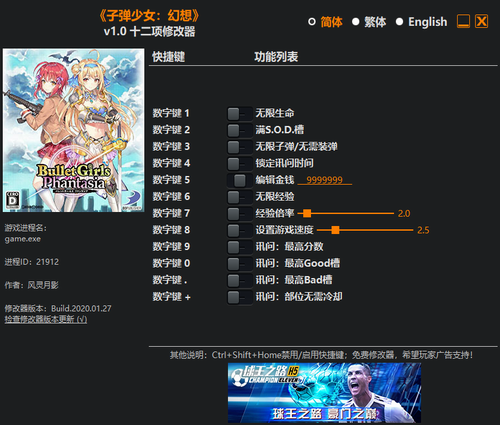 子弹少女幻想十二项修改器风灵月影版注意事项: