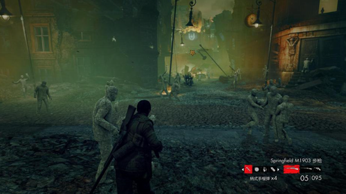 7、游戏中的敌人有不死超级士兵,重装骷髅士兵,僵尸狙击手,电锯精英,火焰恶魔等等,最终等待玩家的是大魔王希特勒自己。