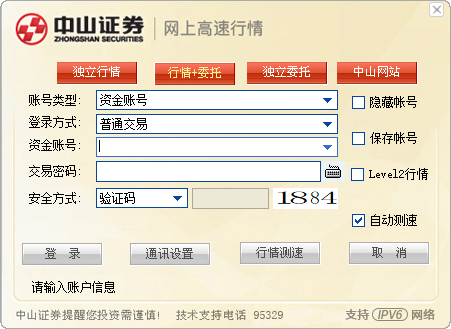 中山赢者专业版是中山证券推出的pc版金融交易终端,专为广大的金融投资者打造而成,提供全面完善的金融信息服务,具有反应速度快、交易稳定安全、信息全面等优势,能够帮助用户早日完成财富自由的目标。新版本提供高速网络接入,支持电信及网通多入口自动测速登陆.增加验证码认证登录方式,方便您的登录和使用。 新增港股通 、股转新规(公开发行和连续竞价)、创业板改革、支持IPV6网络、支持中小板合并。