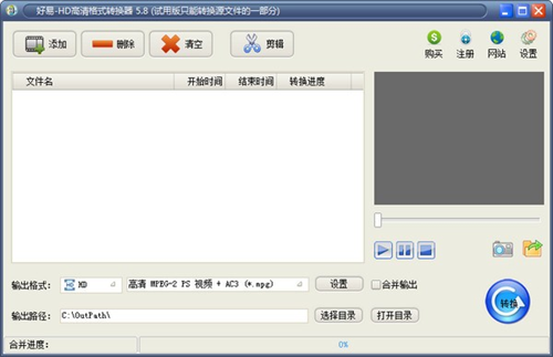 好易HD高清格式转换器是一款功能实用的视频格式转换器软件,能将多种高清视频格式转换为其它高清视频,而且还支持批量转换,界面人性化,且简单易用,操作也方便,同时支持添加几乎所有的视频格式。好易HD高清格式转换器可以将多种流行的高清视频格式转换为高清H.264、高清AVI、高清MPEG-2、高清ASF、高清MP4等高清格式;同时也可以转换输出AVI、FLV、MKV、3GP、MP4、iPhone、ipad、PSP、VCD、DVD等十多种普清视频格式;并可以从视频中提取音频输出MP3、M4A、AAC等格式。除此之外,软件还可以任意分割转换您想要的视频精彩片段,也可以将多个视频进行无缝合并输出一个大视频,还可以快速拍摄视频中的某个精彩瞬间并保存为图片格式。