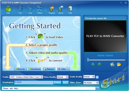 FLAV FLV to WMV Converter是专业的FLV转换器,可以以最快的转换速度和最好的质量转换FLV视频到WMV。如果你想欣赏WMV格式的FLV视频,FLAV FLV to WMV Converter绝对是最好的选择。
