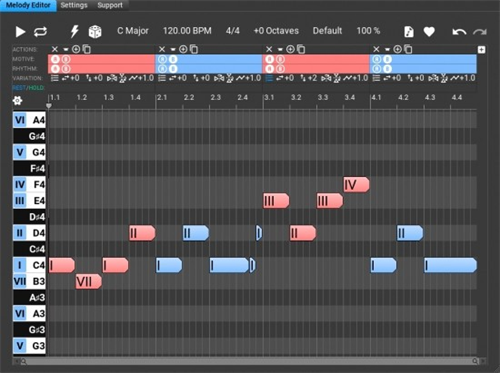 - 基于详细的节奏和形状选项的动机编辑器和一键生成的旋律。
