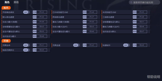 吸血鬼崛起十九项修改器一休大师版按键功能描述: