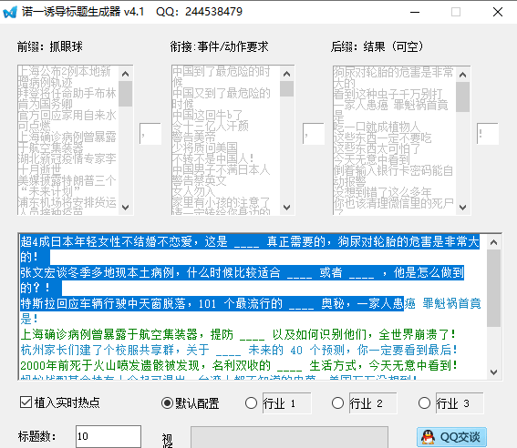 - 支持多行业标题生成,打造你自己的标题神器