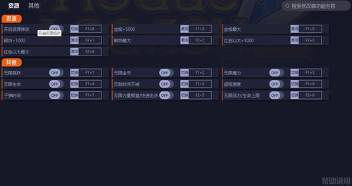 3、开启修改器各主初始项再使用各子修改项[无主初始项则不用开启][主初始项:如开启...修改]。