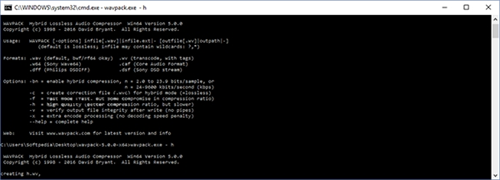 WAVPACK [-options] infile[.wav]|infile.ext|- [outfile[.wv]|outpath|-]