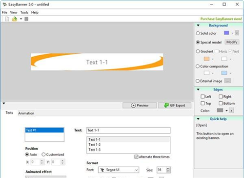 该软件是基于预设的组成,在项目中指定横幅的内容,无论是文本还是图像。EasyBanner提供了一个从现成的例子创建横幅的功能。
