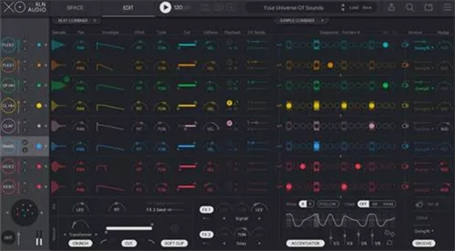 XO探索音色的方式非常壮观,就好像你在一个虚无缥缈的宇宙里,面对着代表每个音色的点点繁星一样,先是通过颜色或者特殊的筛选方式选择出一个星星,然后在它旁边的就是类似的声音。将各种声音像多个星星连接起来的星座一样连接起来,就成了一段pattern。
