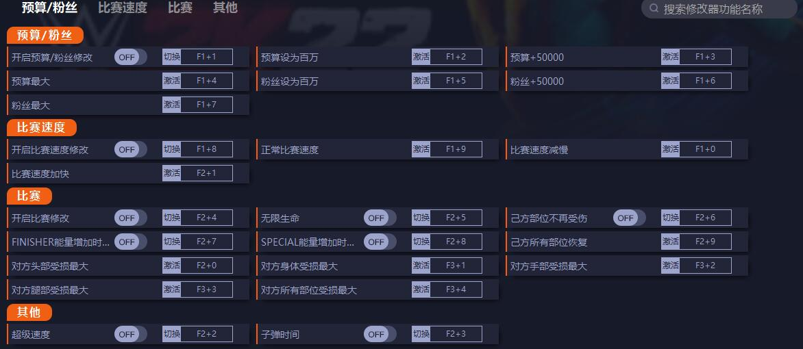 WWE 2K22二十一项修改器一休大师版使用介绍: