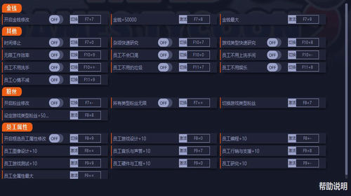 《疯狂游戏大亨2二十七项修改器一休大师版》是一款根据同名游戏改编制作而成的修改器,在游戏中玩家所扮演的是一个游戏公司的老板,需要招募负责各个事情的员工们,需要有游戏开发、游戏客服、游戏销售人员等,招募到这些员工之后玩家的公司就正式的起步了,为了然玩家更好的体验这款游戏,本次带来了疯狂游戏大亨2二十七项修改器这款辅助工具,拥有可修改金钱、时间停止、所有类型粉丝无限、员工全属性最大、无限工作效率等等二十七项修改功能,让玩家在游戏中可更加开心快乐的体验。
