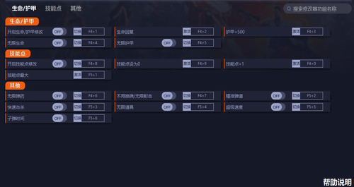 3、开启修改器各主初始项再使用各子修改项[无主初始项则不用开启][主初始项:如开启...修改]。