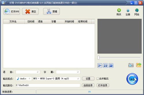 好易DVD转MP3格式转换器是一款可以处理DVD文件的格式转换工具,我们不仅可以将DVD格式文件里的音频内容直接提取出来,而且还可以转换成为MP3格式的音乐文件,功能非常强大。