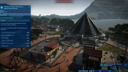 在岛屿上放置更多探勘中心、化石中心和研究中心,你便能取得新恐龙,并研究新项目。