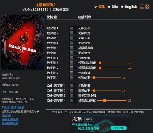 喋血复仇十五项修改器风灵月影版注意事项: