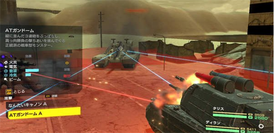 当一场战斗打响后,屏幕两边会分别显示对峙的双方,如果某角色是乘战车时遇敌,战斗画面就会显示这辆战车,玩家就可以操控战车上的主炮、副炮、SE来攻击敌人。当战车受到攻击后,装甲片(SP)就会减少,而车内人物一般不会受伤。同时,如果需要使用人类武器,玩家和可以通过“乘降”命令让其下车。当所有角色的HP都为0时,战斗即以失败告终,该作就算队伍全灭也不会让游戏结束,而是会自动传送回到钢铁基地。战斗胜利后玩家会得到经验与金币,还会有一定几率得到怪物掉落的物品。
