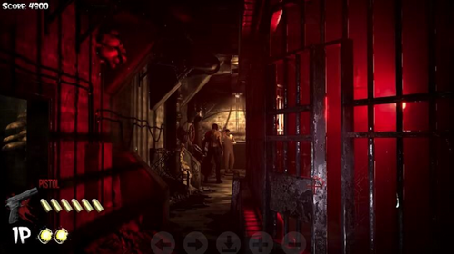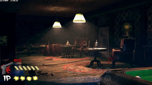 5、在正式上手本作前,关于如何还原实际的光枪射击效果一直是我比较好奇的一点,而当真正开始游戏后,结果其实也并不算出乎意料。本作针对Switch的操作模式做出了一定的“适应性”的调整,初始情况下玩家只能通过一个摇杆来控制屏幕中央的准心位置,除此以外你也可以在菜单中开启陀螺仪的遥控模式,借由摆动Joy-con或是Pro手柄 实现“还原”光枪射击的玩法。