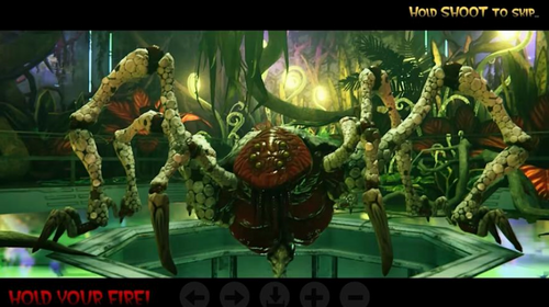 4、难度方面,本作整体难度似乎有些弱于原版,不管是敌人的攻击频率、速度甚至一些Boss比较让人眼花缭乱的攻击都得到了一定的弱化,好的一面是即便你并不是特别擅长于这类第一人称射击游戏,在简单和普通难度下也是可以顺利完成整个流程的,但如果你是一个原版的玩家,并想要在本作身上找到当初街机厅的味道,那么它的还原程度可能并不算理想。而关于原版街机的灵魂“投币换命”环节,每次开局后玩家都将各拥有10条生命,当生命值耗尽后可以通过花费一定的分数来换取一条生命,体验而言这种重生机制还是比较宽裕的。