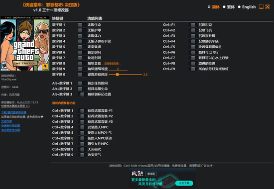 侠盗猎车手罪恶都市重制版三十一项修改器 风灵月影版