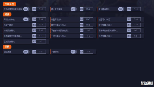 3、开启财政修改:开启后,点击财政,再修改盈亏,预算,下赛季预算。