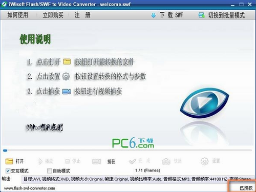 1、FlashSWF文件转换为AVI,口、DivX、MPG、MPEG1、MPEG2、WMV、MP4、3GP,FLV,MOV,MPEG-4、H264格式的视频。