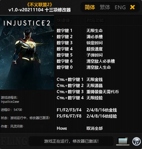 不义联盟2十三项修改器风灵月影版注意事项: