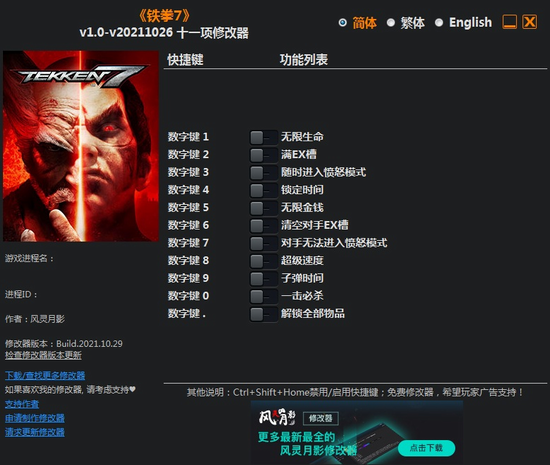 铁拳7修改器风灵月影版功能描述: