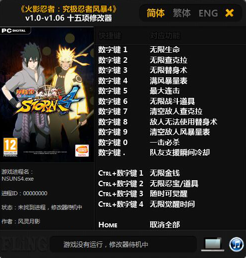 火影忍者究极忍者风暴4十五项修改器风灵月影版注意事项: