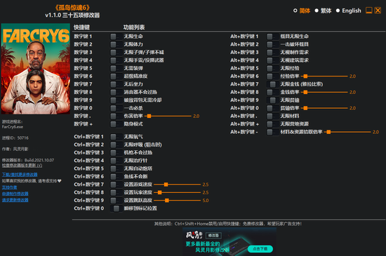 孤岛惊魂6三十五项修改器风灵月影版注意事项: