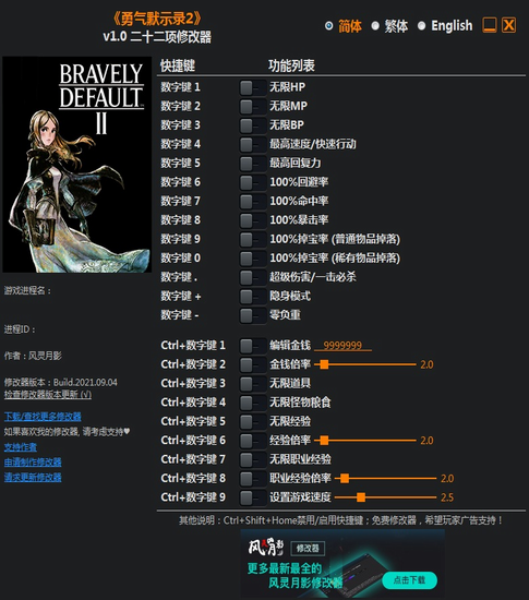 勇气默示录2修改器风灵月影版功能描述: