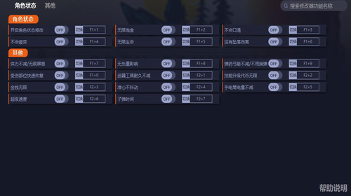 3、开启修改器各主初始项再使用各子修改项[无主初始项则不用开启][主初始项:如开启...修改]。