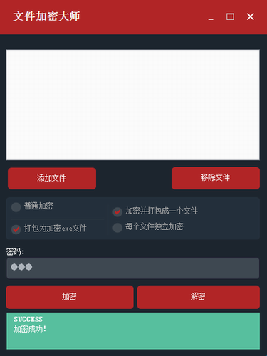可以选择加密为普通文件,或加密并打包成EXE文件(推荐)。