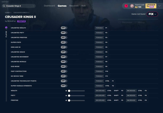 十字军之王2十六项修改器MrAntiFun版提升封臣好感: