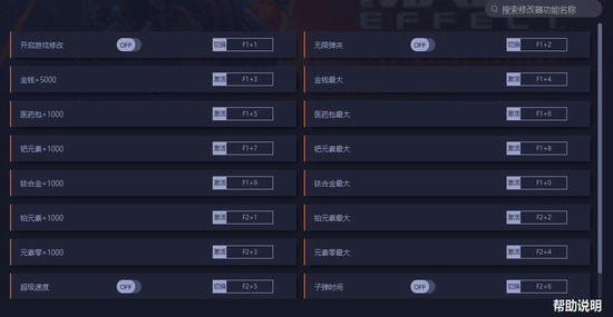 质量效应传奇版十六项修改器一修大师版使用说明:
