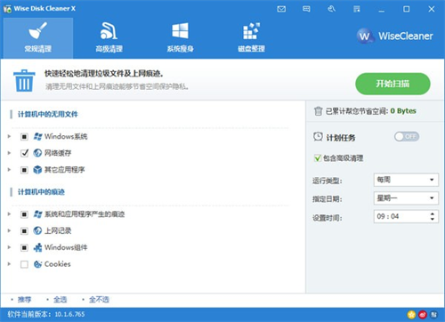 5.Wise Disk Cleaner X拥有和 wise 注册表清理工具一样的计划任务功能,可以在你想要的任何时间自动清除你电脑上的垃圾。