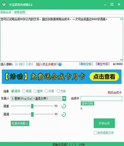 《小宝语音合成器绿色版》是一款功能强大且不错的语音合成器软件,该软件界面简洁,没有多余的复杂功能,使用起来也非常方便,广泛的应用于场景、客服场景、童声、外语等各行各业的人群手中,此外,提供了多种语种,其中包括:河南话、湖南话、四川话、陕西话、男女声等多种风格,用户可以依据个人需求进行选择,非常强大哦。并且,还用矫正多音字功能,非常强大。