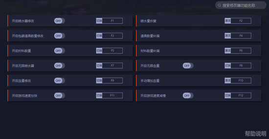 F7:开启无限喷水器(需要关闭F1)