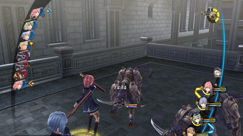 战斗是《轨迹》系列独特的战斗系统“AT战斗”,根据画面左边表示的行动顺序的AT栏,角色按顺序展开指令战斗。